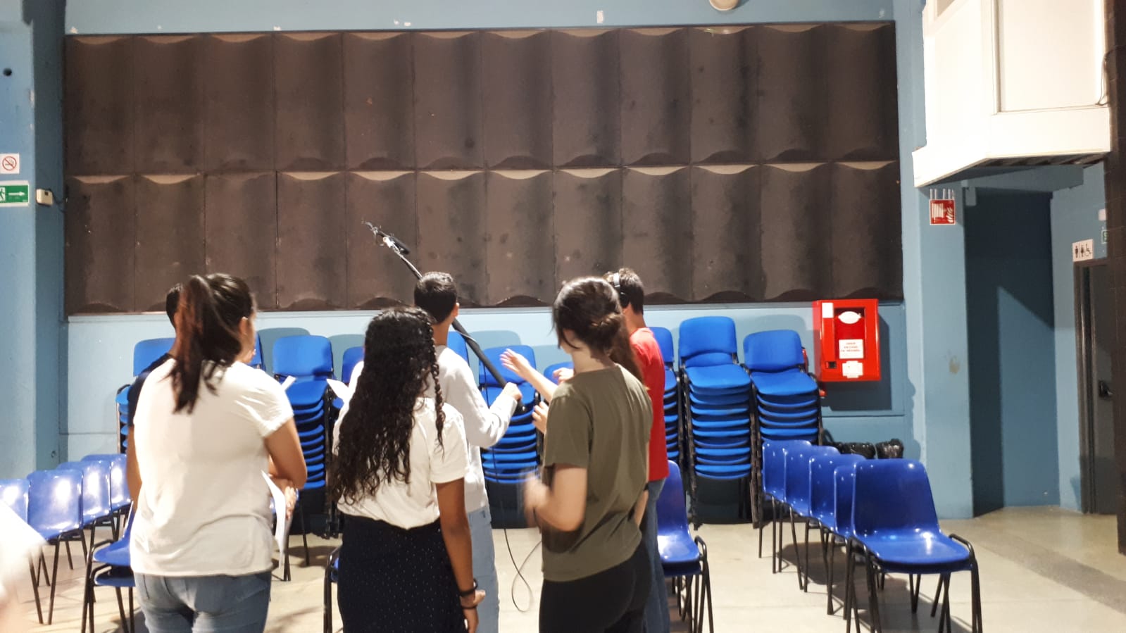 Després del descans per esmorzar ens hem repartit tots els rols que hi ha en una pel·lícula i ens han donat un guió fet. Llavors entre tots el que hem fet és gravar un curt.